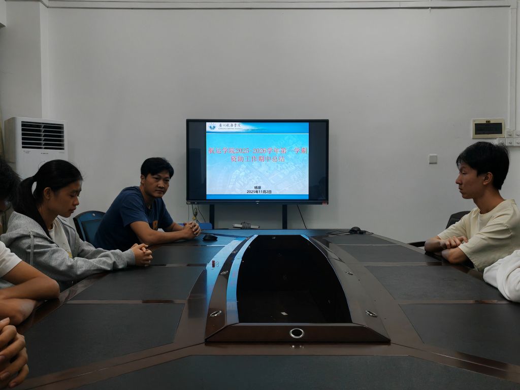 在B7航海楼214召开2025年资助工作期中总结会,由学院资助专项工作的负责老师杨璟主持,学生干部代表参加。
