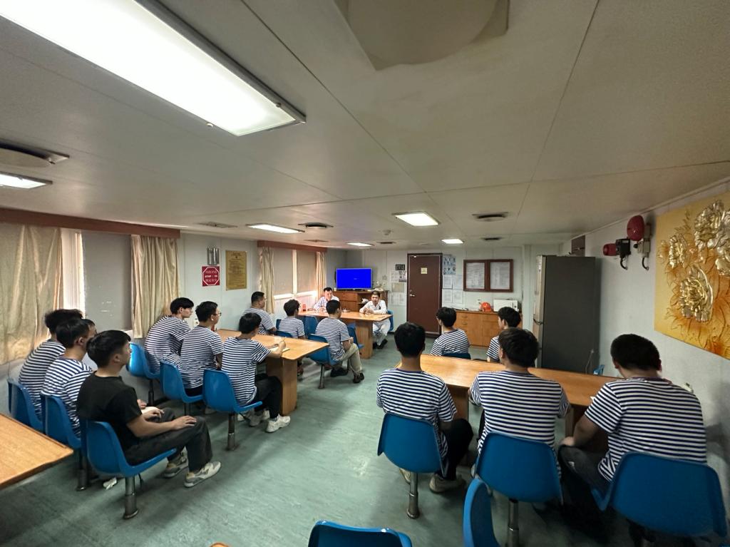 4月22日,船舶电子电气专业学生在江苏泰州登上“安诚山”轮开展航行认识实习。登船后,船长、政委给我们上了安全第一课,告诫我们一要提高思想认识,安全是所有工作的底线,意识不到风险比风险本身更可怕。二要了解并熟悉居住和工作环境,掌握两条以上的逃生路线,一旦遇到紧急情况,可以顺利抵达集合点,最大限度保护个人人身安全。三要熟悉应变任务卡上的个人职责,以便遇到紧急情况不慌乱,从容撤离危险区域。四要按要求穿戴安全防护用品。前往工作区时必须穿好工作服、工作鞋,戴好安全帽,时刻注意安全。同时也对生活中的注意事项做了相关要求。