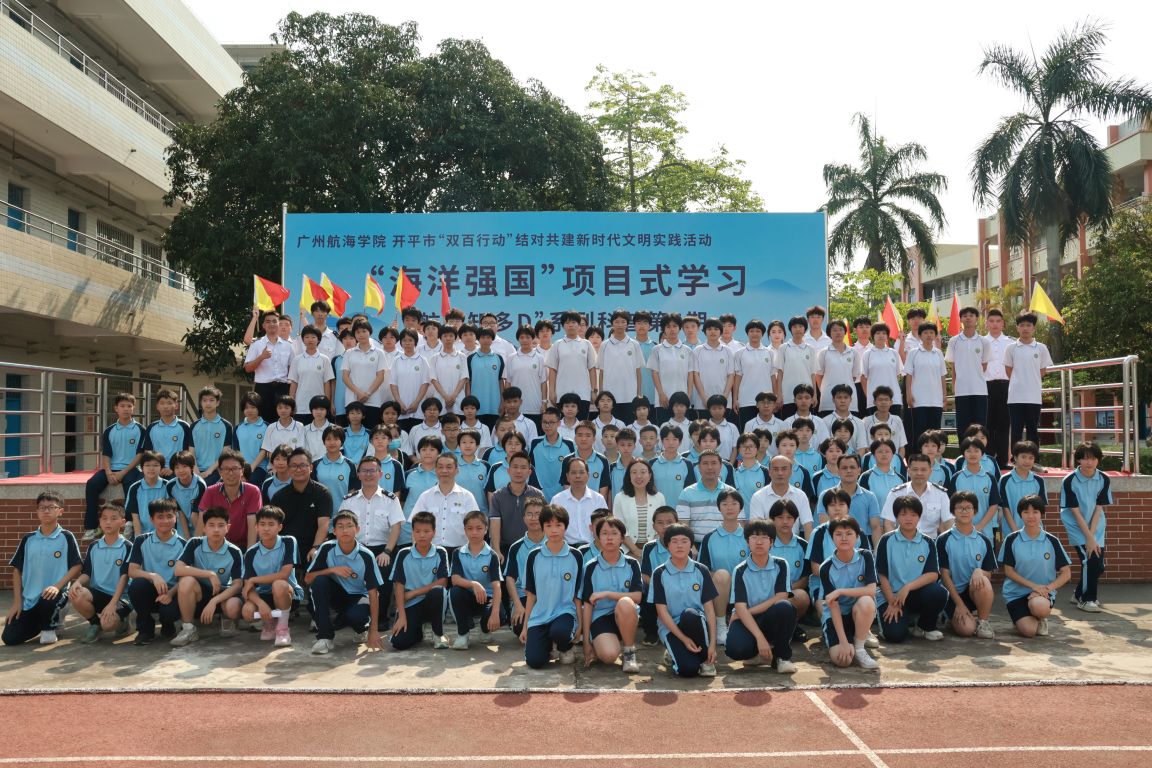 党委书记周楠带领海洋强国科普活动团队到开平市百合初级中学开展“航海知多D”第4期科普活动。活动通过护航船长报告会、航海技能展示等形式,为近400名中学生送去一堂丰富多彩、体验感满满的沉浸式海洋课堂。开平市文明办、开平市教育局、百合镇政府等有关负责人出席了本次活动。