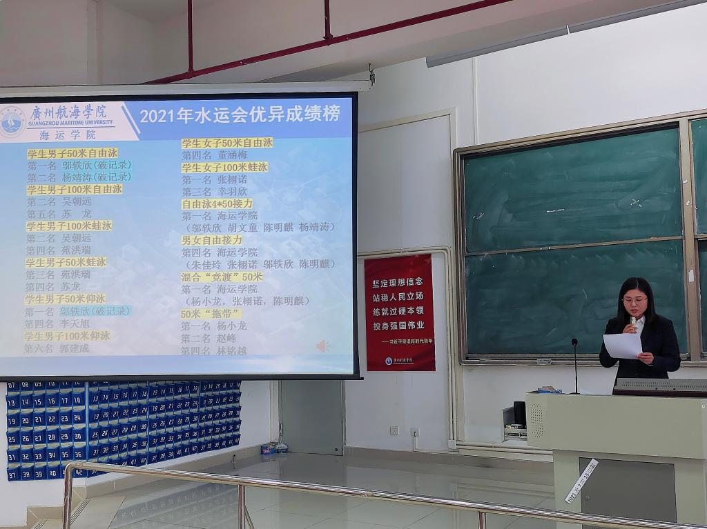 会上,林少栋老师充分肯定了我院所有参赛运动员在本次水运会中展现了海运学子良好的身体素质和积极向上的拼搏精神,赛出了水平、赛出了成绩,感谢所有运动员们的付出,也希望海运学子们能继续发扬体育精神,在接下来的校运会中再创辉煌。