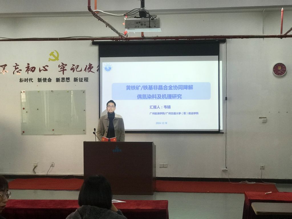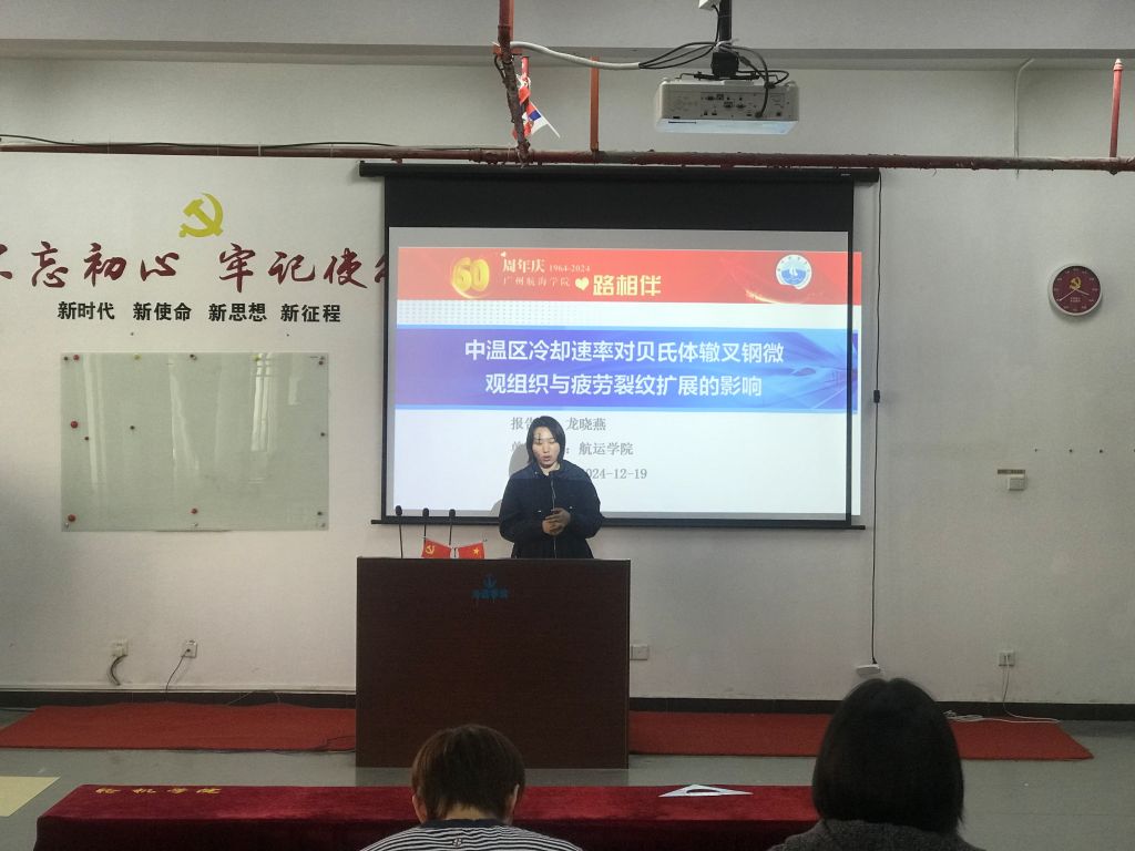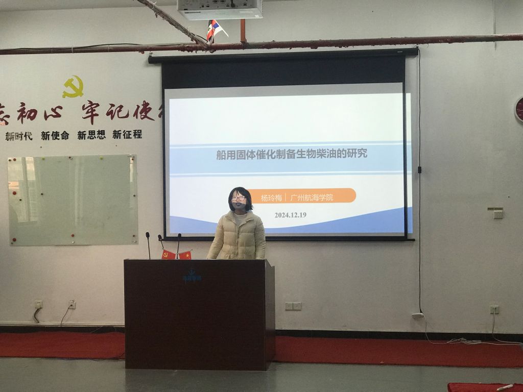 在船舶电力推进领域,董良雄教授以《一种小型电力推进系统设计分析》为题,为与会者深入浅出地介绍了对一种微型电力推进系统的研制工作,结合对推进系统水动力及振动的研究成果,阐述了微型电力推进系统的创新性及研究难点。在智能船舶领域,卓永强教授以《基于决策级信息融合的复杂水域船舶避碰方法研究》为题,为与会者详细地介绍了与复杂水域船舶避碰密切相关的单一聚类系统性碰撞风险的大数据趋势态势分析方法、高碰撞风险区域融合构建与动态识别等研究工作。在材料科学领域,龙晓燕副教授以《中温区冷却速率对贝氏体辙叉钢微观组织与疲劳裂纹扩展的影响》为题,为与会者详实全面地介绍了其在受中温区冷却速率影响下贝氏体辙叉钢微观组织与疲劳特性方面的研究进展。在新能源领域,陈丽丹副教授以《光伏发电系统电弧故障辨识》为题,为与会者生动地介绍了其在光伏发电系统电弧故障辨识算法方面的研究进展及未来研究计划。杨玲梅副研究员以《船用固体催化制备生物柴油的研究》为题,为与会者深入地介绍了其在船用固体催化制备生物柴油技术方面的研究进展及未来研究计划。张国岭博士以《船舶氢能应用路径探讨与问题分析》为题,为与会者介绍了其在船舶氢能应用路径方面的研究进展及对风险防范的感悟。