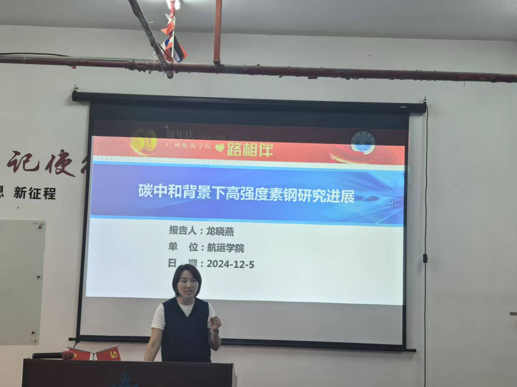 在碳中和环保材料领域,杨玲梅博士的《初识新能源,走进可再生能源》报告,深入浅出地介绍了可再生能源的种类、特点及应用前景,为与会者打开了新能源世界的大门。来自材料科学领域的韦靖博士则以《铁基非晶合金在处理印染废水中的应用》为题,介绍了一种新型的铁基非晶合金材料在印染废水处理中的优异表现,为环保领域的技术创新提供了新方案。龙晓燕博士的《碳中和背景下高强度素钢研究进展》分享了高强度素钢在碳中和背景下的最新研究成果,她详细介绍了高强度素钢的成分、性能及应用领域,并探讨了如何通过技术创新实现绿色生产,降低碳排放。郭学平博士和韩冰博士为大家带来了《涂层技术在船机修造中的潜在应用》和《碳纳米管增强高熵合金涂层的摩擦磨损特性研究》报告,分别探讨了涂层技术在船机修造中的广泛应用前景,探讨了碳纳米管在高熵合金涂层中的增强作用,以及该涂层在摩擦磨损过程中的性能表现,为新型耐磨材料的研发、船机修造行业的创新发展提供了新思路。