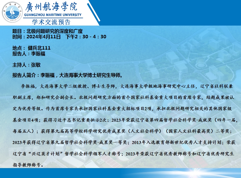 李振福教授学术交流预告:北极问题研究的深度和广度