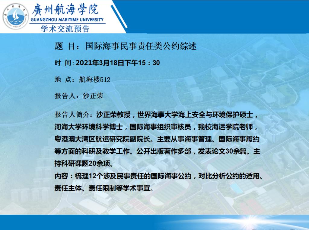 沙正荣教授学术讲座:国际海事民事责任类公约综述