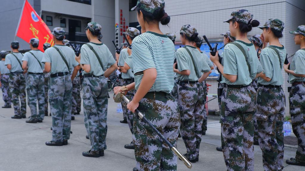 9点整,随着指挥官一声响亮的号令,整齐的军训队伍迅速集结。在北区操场上,烈日炙烤着大地,正步练习如火如荼展开。每双眼睛都紧盯着前方,步伐铿锵,仿佛连时间都在这一刻停滞。迷彩服早已被汗水浸透,但他们的眼神依然坚定,步伐沉稳,尽显军人般的刚毅与决心。