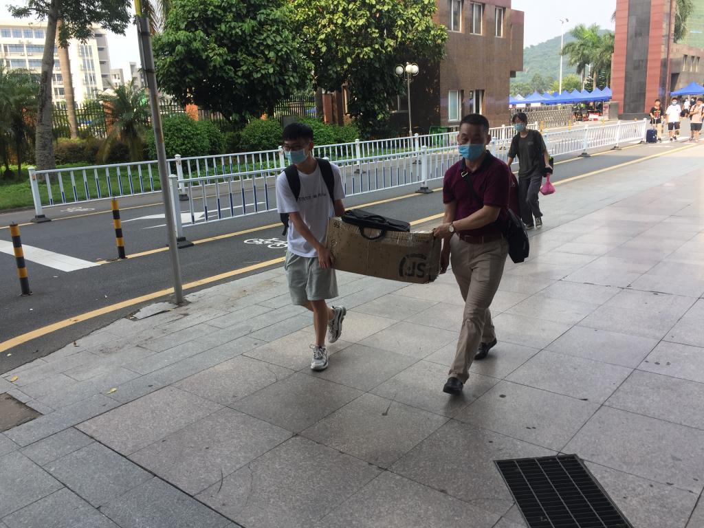 8月24日早上,施斌书记带领教职工志愿服务队分别到校门口、航海楼门口、北四栋、北二栋宿舍楼下和南六宿舍楼下进行驻点,提前分配工作任务,安排教职工轮流协助学生搬运返校行李、跟车搬运宿舍物品、为返校学生提供饮用水。其中,刘传润副院长带领陈昌明、龚翔、祝鸿等老师在北四宿舍楼下帮学生搬行李,何淋、周伟、黄橙等老师在校门口指引学生分流入校,林少栋副书记带领三位中队长在航海楼和南6宿舍楼下协助学生搬运行李,叶振斌老师全程跟车负责学生宿舍搬迁。由于学生返校携带物品较多,宿舍搬迁物品也多,天气炎热,教职工汗流浃背,但仍然坚持协助同学们搬运行李并完成宿舍搬迁工作。同学们纷纷感谢老师们的帮忙,表示到校后有“回家”的感觉。