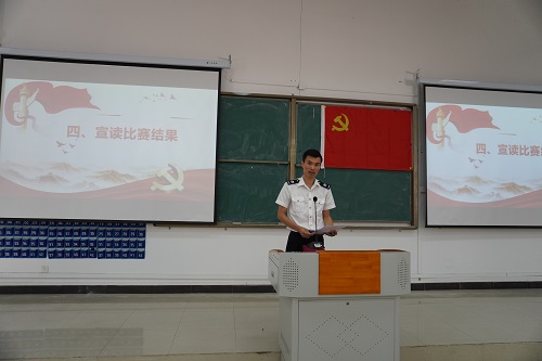 与会来宾及师生一同观看两个大赛的视频回放,展示了海运学子青春心向党的豪情壮志与半军事管理良好的精神风貌。接着,学生党员代表曾晓玲同学对两次比赛开展情况进行总结,重温海运学子用嘹亮歌声赓续红色血脉,传承红色基因。随后,林少栋老师宣读了《关于对“列队上课唱红歌”比赛获奖区队进行表彰的决定》、《关于对“庆祝中国共产党成立100周年大合唱比赛”获奖区队进行表彰的决定》两个文件。李大伟副总经理、马冬青船长、李海兵高级主管等应邀为获奖代表颁发奖金及奖杯。