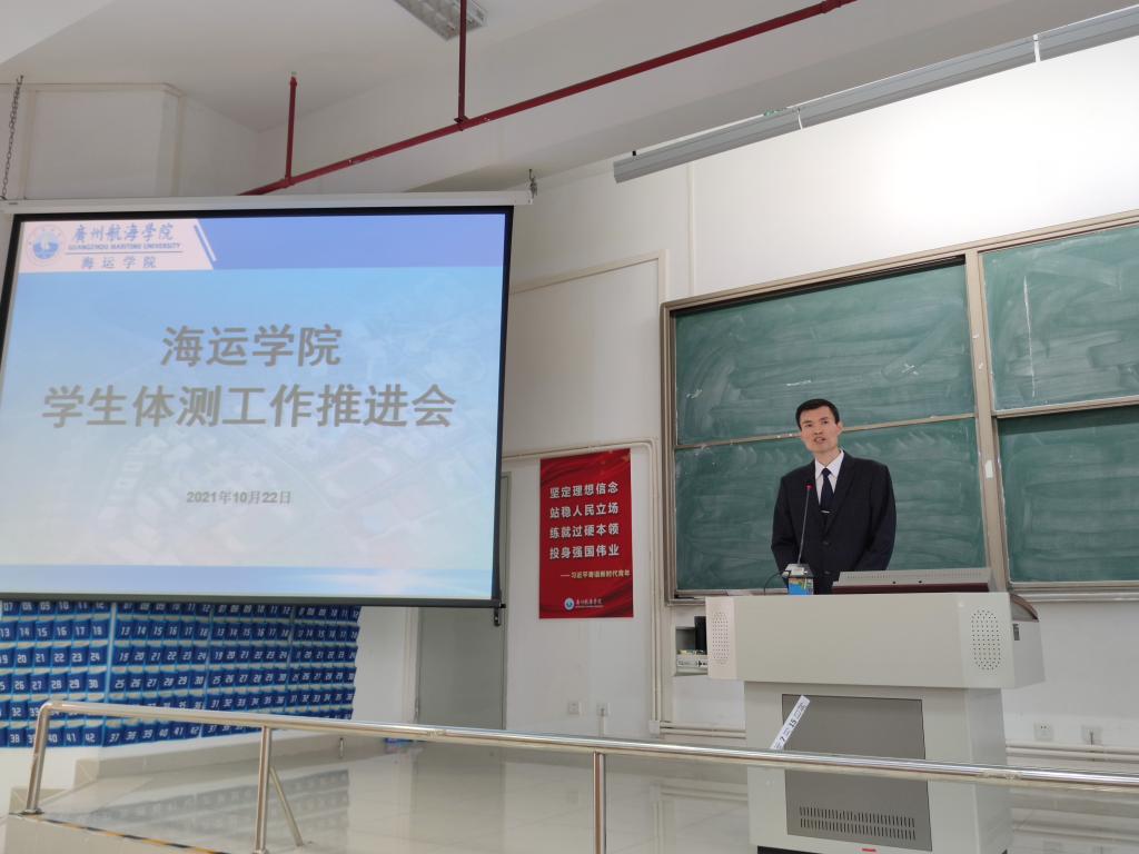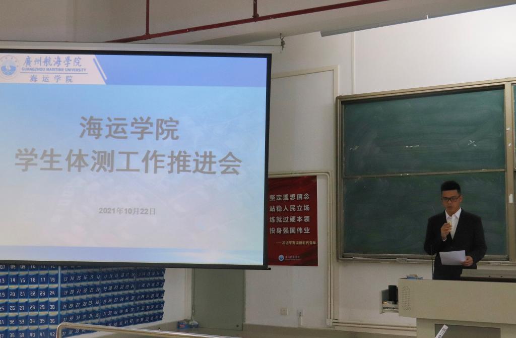 “国家学生体质健康标准优良率”达标补短板专项行动方案》的文件精神,2021年10月22日下午16时,海运学院在健兵北400室召开学生体质健康测试工作推进会,学院党委副书记林少栋老师、全体中队长及两百余名学生干部代表参加了会议。