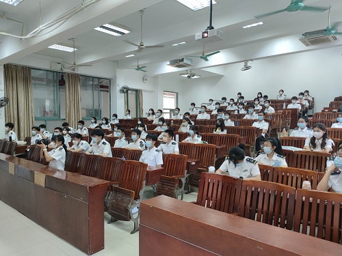 (海运学院供稿)3月22日上午,海运学院党委书记施斌在教学楼110课室向海运学院2021级海事管理专业的同学们讲授以《在新的赶考路上创造新的辉煌》为主题的“思政第一课”。