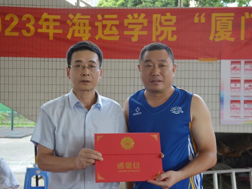 厦门海隆对外劳务合作有限公司副总经理洪玉成在讲话中对海运学院篮球赛表示大力支持,期望运动健儿们在本次比赛中赛出风格、赛出水平、赛出友谊,并祝愿篮球比赛圆满完成。随后,张海波书记向公司颁发了感谢信和纪念品。洪玉成副总经理为参赛队伍举行开球仪式。