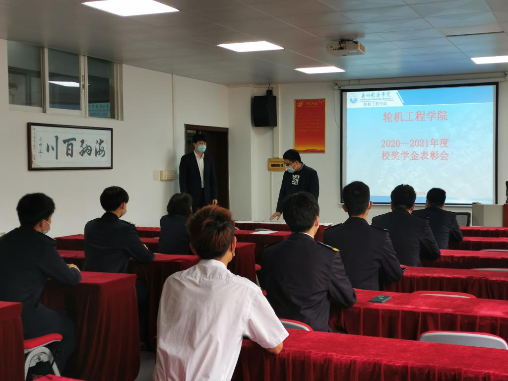 首先,由杨璟老师对获得奖学金的同学表示祝贺。随后,大队长张志斌老师上台致辞,汇报了轮机工程学院在2020-2021年度取得的显赫成绩和我院学子的卓越风采,并向获得奖学金的同学表示衷心的祝贺与表彰(此次获得奖学金的同学共有127名,特等奖一人,一等奖26人,二等奖26人,三等奖74人),希望获奖同学能以身作则,持续发扬自身优点,在今后的生活和学习中严格要求自己。行为世范,不断带动身边的同学共同进步。并号召广大轮机学子向获得奖学金的同学学习,勇争上游,努力学习,做国家的栋梁之材。