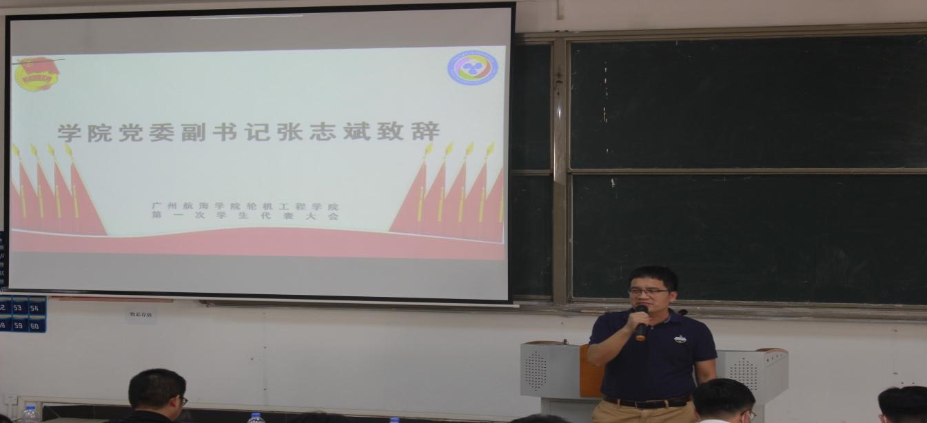 轮机工程学院第一次学生代表大会在教学楼209顺利召开。轮机工程学院党委副书记张志斌、港航学院分团委书记程松、轮机工程学院分团委书记陈茂嘉、中队长杨璟、校学生会代表张嘉良到会指导,54名学生代表出席了本次大会。