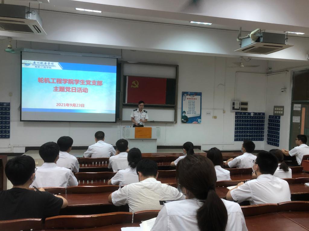 (轮机工程学院供稿)为开展好“我为群众办实事”实践活动,把党史学习教育成效转化为工作动力和实际成效,2021年9月23日下午,轮机工程学院学生党支部于教学楼109开展了“学风建设,党员先行”主题党日活动。学院学生第一党支部书记郭世俊老师、第二党支部书记赵垒老师、陈茂嘉老师以及全体学生党员、党务工作者、入党积极分子代表参加了活动。