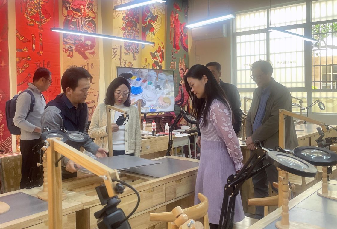 调研组一行在广州市非物质文化遗产传承基地,参观了木版年画和广绣展示区域,了解了木版年画的历史渊源、制作工艺和传承现状,观看一针一线勾勒出独特韵味的广绣作品,感受传统文化的深厚底蕴与独特魅力。