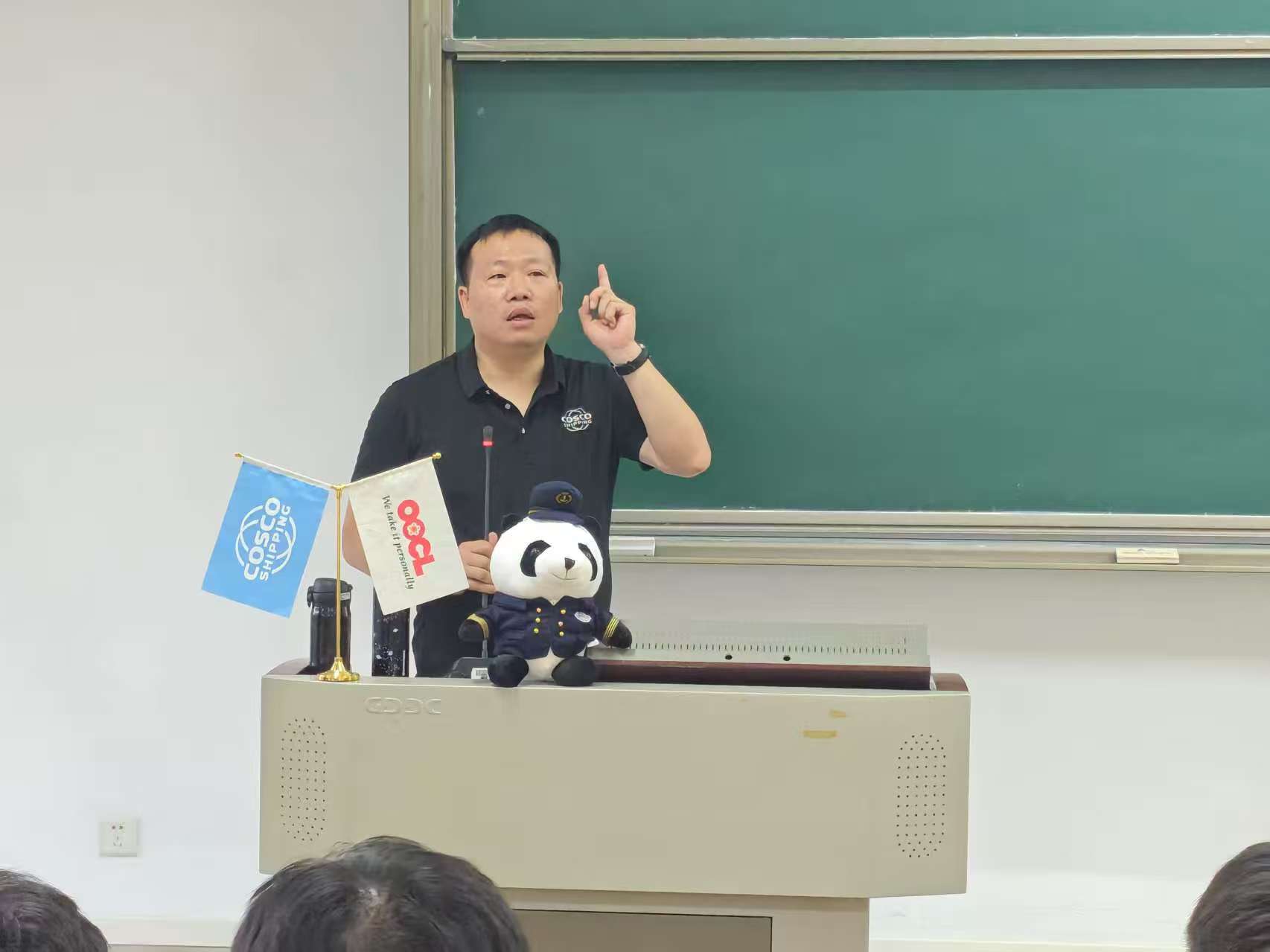 2012届校友、广州明洋船舶管理有限公司人事主管饶亚运介绍了企业发展现状、资质及未来布局,他结合个人职业成长经历,勉励学弟学妹夯实专业基础、着重提升英语水平和综合能力。