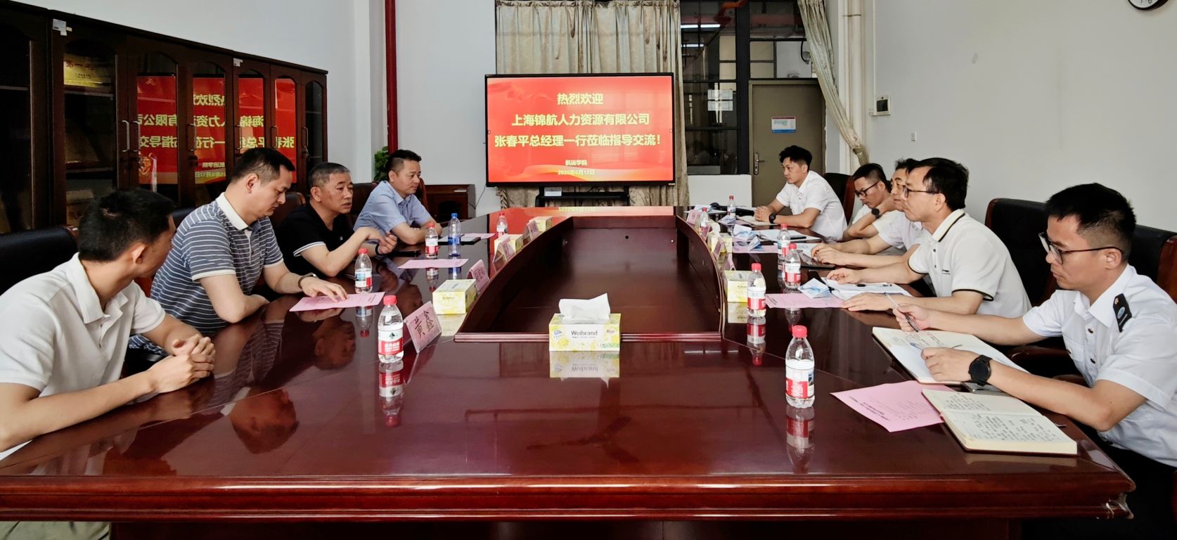 正处级组织员任志福,副院长刘传润、杨其观等热情接待。双方在B7航海楼514会议室进行了座谈,围绕深化校企合作、促进人才培养等方面进行了深入交流。