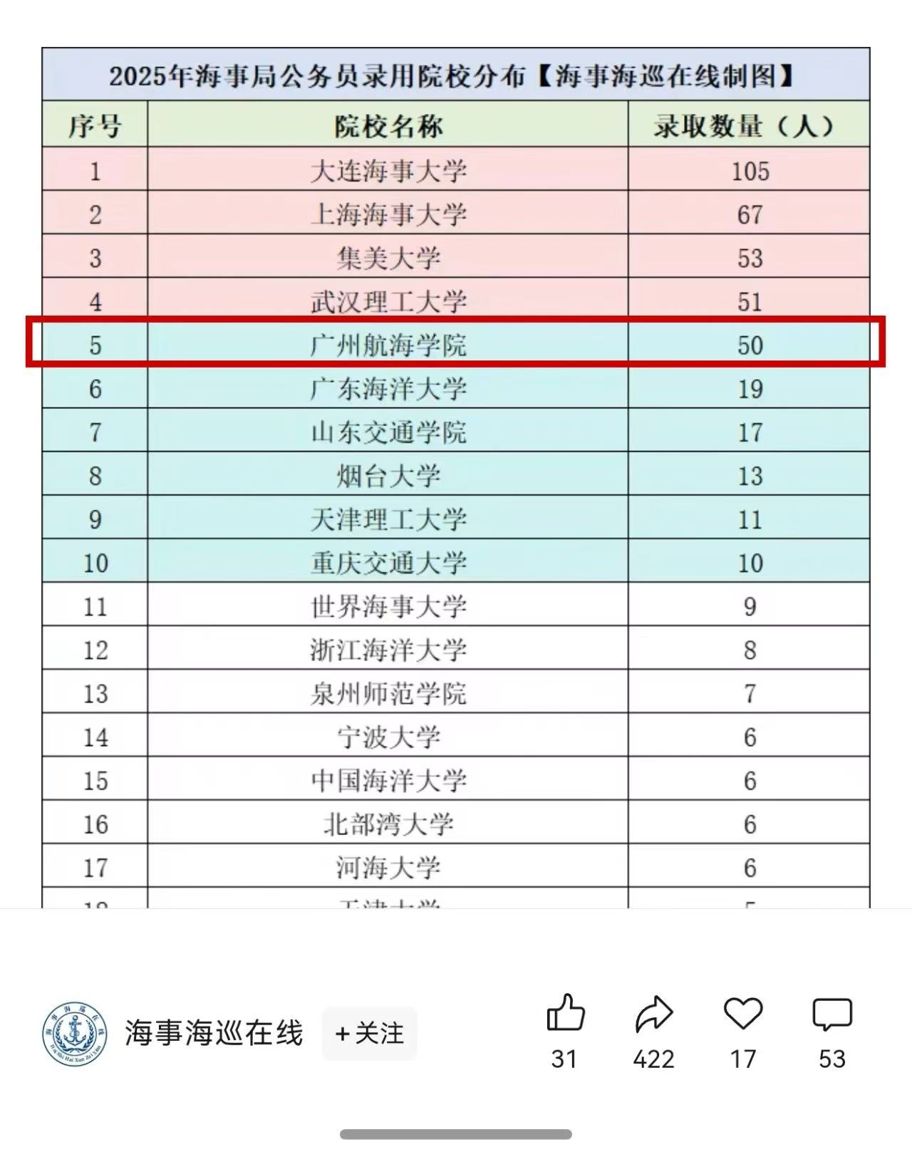 全国高校第五!广航50名学子考入中国海事系统