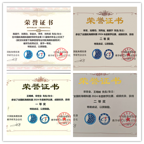 此外,大会还举办了全国航海模拟器教学比赛,比赛过程竞争激烈,我校教学队伍凭借扎实的教学功底与创新的教学设计,在比赛中脱颖而出。王明峰老师的“基于轮机模拟器的《机舱资源管理》”荣获一等奖,宋世全老师的“轮机模拟器训练”和李芳老师的“《O-AMAS教学法在GMDSS仿真教学中的应用》”荣获二等奖。这些奖项不仅是对我校教师教学能力的高度肯定,更是对学校航海模拟器教学培训成果的有力见证。